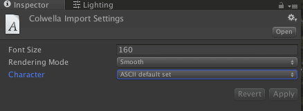 To use another font, make sure it’s not marked as “Dynamic” in Import Settings. Select your new font and use the following settings (you can also use another character set if you need to include special characters):
