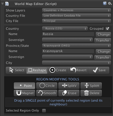 - Revert: will discard changes and reload data from current files (in Resources/Geodata folder).