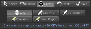 - Create: enable the creation of cities, provinces or countries.