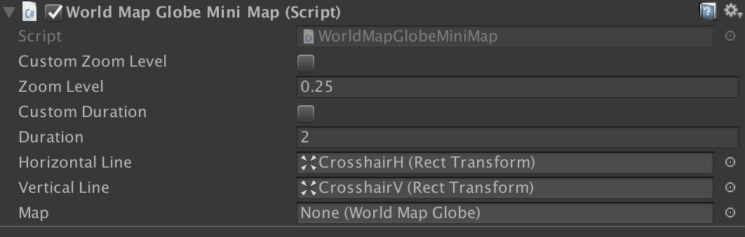 Once added, expand the WorldMapGlobeMiniMap gameobject and select MiniMap Image to access some options: